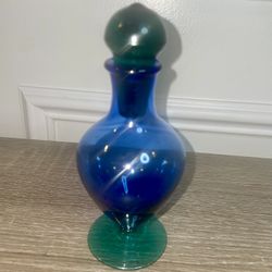 VINTAGE 2 TONE BLUE & AQUA GREEN DECORATIVE GLASS PERFUME+STOPPER FOOTED BASE(13$22Chicago, IL