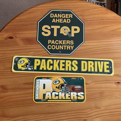 Green Bay Packers Home Office Stop Sign 12x12, Plastic “ Packers Drive” 4x24 & Plastic License Plate 6x12$7Lombard, IL