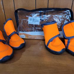 New Set Of 4 Petbobi Bright Neon Orange & Black Winter Rubber Bottom Velcro Strap Dog Boot Shoes Size Large / 70 - See Pics!!$10Plainfield, IL