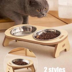 1pc Tilted Food And Water Bowl With Wooden Stand, Detachable Stainless Steel $20Schaumburg, IL