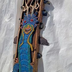 Aztec Serpent God, Quetzalcoatl. Carved Out Of Cedarwood, Mable Eyes. Dragon God$200Chicago, IL