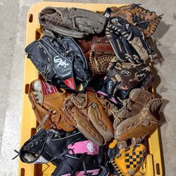 Family baseball package including four gloves, bat and 2 balls. There is a first baseman’s glove, adult fielders glove and. Couple of kid’s All one pr$75Joliet, IL