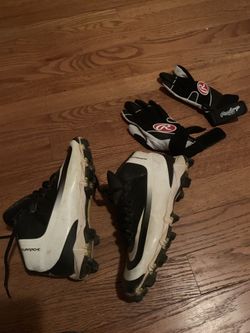 Kids baseball cleats size 2y and batting gloves size yxs$20Aurora, IL