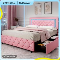 Queen Pink Led / Speaker / Drawers $300New Lenox, IL