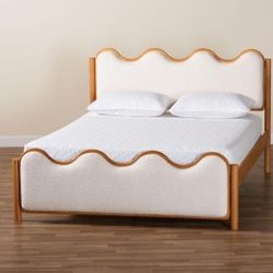 Mid-Century Modern Scalloped Cream Boucle And Oak Brown Wood Queen Platform$295Bensenville, IL