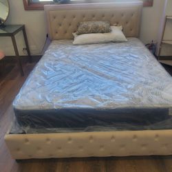 Queen Bed Headboard Frame And Mattress Set For Only $250$250Addison, IL