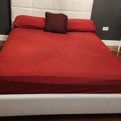 Full- White Leather Platform Bed With Mattress$350Oak Lawn, IL