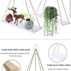 Hanging Shelves for Wall- Hanging Plant Shelf of 2 Set - Rope Floating Shelf Wall Decor Bedroom - Boho Wall Hanging Shelves for Bathroom, Living Room,$18Aurora, IL