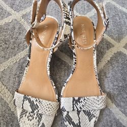 Nine West Women's Snake Skin Print Black White Tan Heel Wedge 7.5$20Oswego, IL