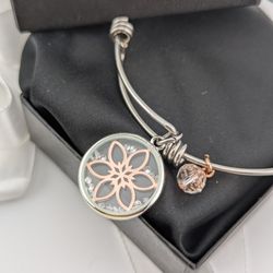 Silver Tone Expandable Bracelet With Gold Tone LA CN Rose Gold Snow Flake Charm$18Chicago, IL