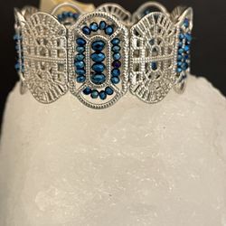 Wide Sea Shell Blue Boho Art Cuff Stretch Bracelet $2Naperville, IL