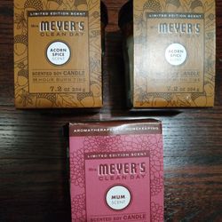3-PACK Mum + Acorn Spice! Mrs. Meyer's Clean Day 7.2 Oz. Soy Candle, 35-Hr Burn!$30Wheaton, IL