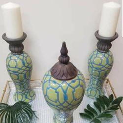 Set of 2 candle holders and a matching decorative piece(vase)$30Orland Park, IL