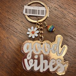 New Gold Tone Good Vibes Daisy Rainbow Keychain Bag Charm $15Oswego, IL