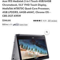 Acer 13" 2 In 1 Chromebook$280Schaumburg, IL