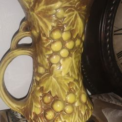 Vintage McCoy Grapes And Leaves Pitcher Yellow Brown 9 in.