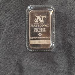 Rare Vintage 1 Troy Ounce National Refiners .999 Silver Bar$110La Grange Park, IL