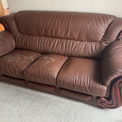 5 Plc Couch Set Leather Wood$400Glendale Heights, IL