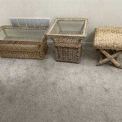 Glass Top Rattan Coffee Table, End Table and bench $200Romeoville, IL
