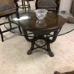 High end glass table with ornate claw base and Legs . Comes With 2 Stools and cushions ! $100Hanover Park, IL