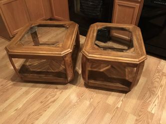 2 oak Glass end tables/ Pick Up Only$40Joliet, IL