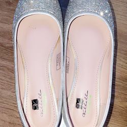 Koala Kids girl size 8 shimmery sequins white ballet style flats w/hard sole dress shoes - perfect for Easter $8Stickney, IL