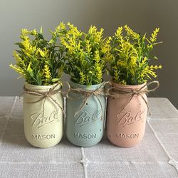 Chalk Painted & Distressed Mason Jar Vases w/faux Flowers Included 3 for $18$18Joliet, IL