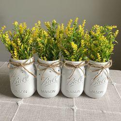 Chalk Painted & Distressed Mason Jar Vases w/faux Flowers Included 4 for $23$23Joliet, IL