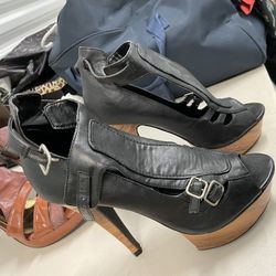 Black Leather High Heel Tiger wood Heel Finish Mona Mia Collection Size 8 Like New! $40Elmhurst, IL