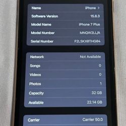 Apple iPhone 7 Plus Unlocked 32GB Gold$129Burbank, IL