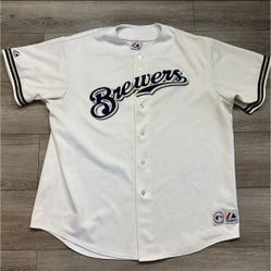 Majestic Milwaukee Brewers MLB Baseball Jersey Mens XXL White Blue Gold $55Aurora, IL