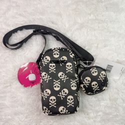 Betsey Johnson Skull Black/Cream Crossbody Bag W/ Coin Wallet $35Stickney, IL