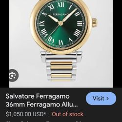 Selling A 36mm Ladies Ferragamo Allure Watch With Green Dial Two Tone $650Lyons, IL