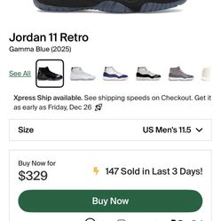 Jordan 11 “Gamma Blue” 2025$385Elwood, IL