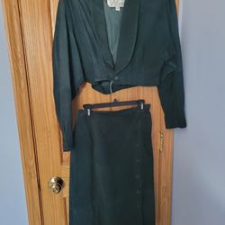 Vintage Green Suede Leather Jacket Skirt Set Sz 12$80Glen Ellyn, IL