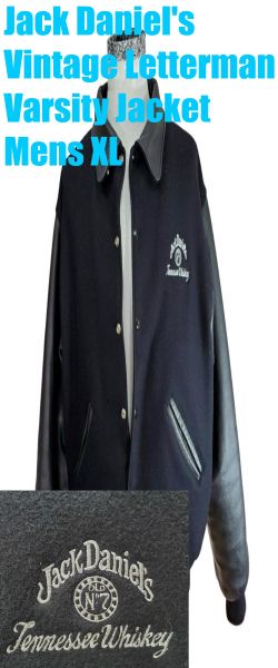 Jack Daniel's Vintage Varsity Leather Jacket Mens XL Letterman Black U.S.A. Made Jordan$150Willowbrook, IL