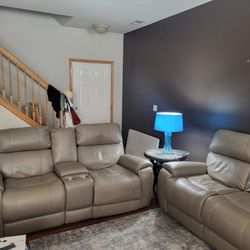 Leather Power Reclining Sofa And Love Seat Set$300Naperville, IL