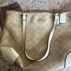 Coach Signature Tote Bag – Beige / Cream Leather Trim$30Wheaton, IL