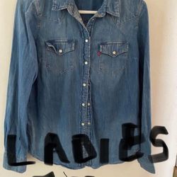 #32 Ladies Small Levi Pearl Snap Denim Long Sleeve. Shows Some Wear On Sleeves$5Montgmry, IL