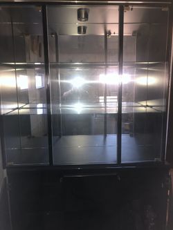 Black lacquer China Buffett 3 tier shelves 2 pc. Bottom part 2 door 2 shelves for storage it has light in very good condition $200$200Glendale Heights, IL