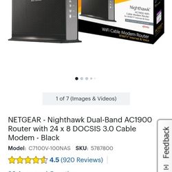 NETGEAR AC1900 WiFi Cable Modem Router$75Naperville, IL