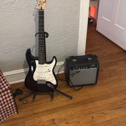 Fender electric Guitar starter bundle Squire Bullet Strat brown sunburst 6 string 20-fret W/gig bag case Marshall Amp, strap, stand & cord. Stratoca$198Glen Ellyn, IL