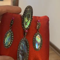Mother Of Pearls/ 925 Sterling Silver Set( Earrings , Ring7.5-8, Pendant ) ! $30Lisle, IL