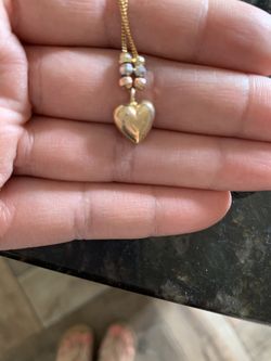 Gold tone necklace with natural stone pendant 32” inches long$7Naperville, IL