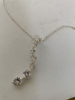 Silver tone necklace and sparkly rhinestone pendant 20” inches long$6Plainfield, IL