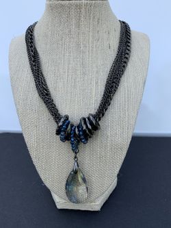 Gunmetal tone necklace with sparkly crystal pendant 22”inches #17$10Plainfield, IL