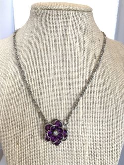 Silver tone necklace with sparkly rhinestone pendant$6Naperville, IL