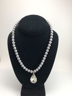 Gray faux pearl necklace with sparkly drop pendant #276$6Naperville, IL