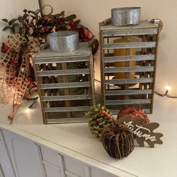 Lantern Lanterns Square Metal & Wood Hanging Candle Lanterns Indoor/Outdoor (Set of 2)$25Schaumburg, IL