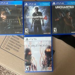 PS4 Games (Death Stranding, Uncharted 4, The Lost Legacy) PS5 Game (Scarlett Nexus) $50Glendale Heights, IL